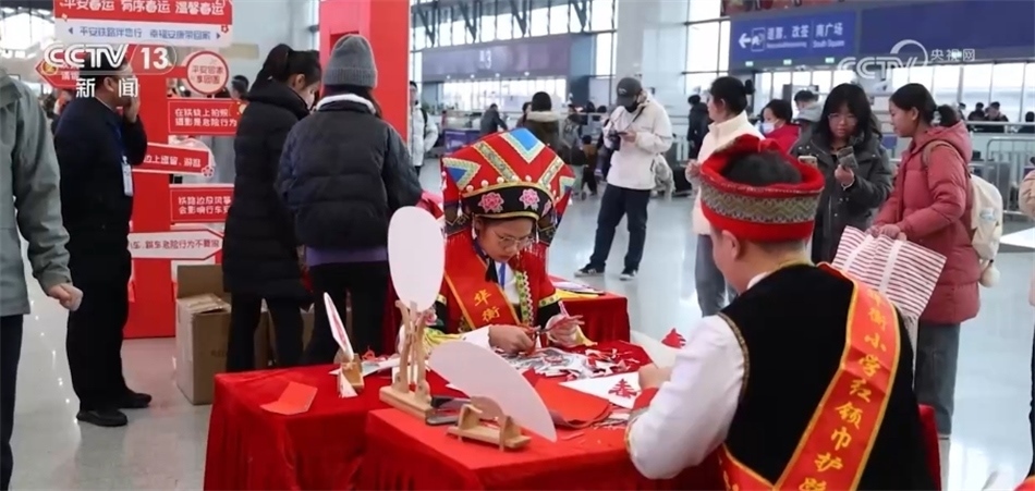 在哈爾濱、西安、上海、廣州各地的火車站,送“?!薄⒖扉W、簽名打卡、文藝表演、民俗文化展示等豐富多彩的活動讓人們帶上一份好心情,踏上溫馨的團圓之旅。