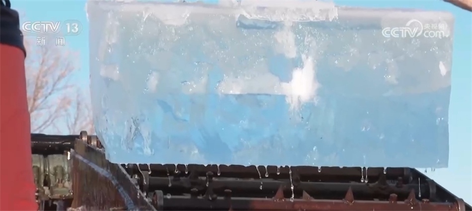 看冰燈、玩超長冰滑梯、和萬人在冰天雪地?zé)嵛瑁巯碌墓枮I冰雪大世界堪稱歡樂的海洋。此時,同樣熱鬧的還有松花江的冰面上,機(jī)器轟鳴、冰花飛濺,一塊塊晶瑩剔透的冰被拖出水面,裝車送往存冰場。
