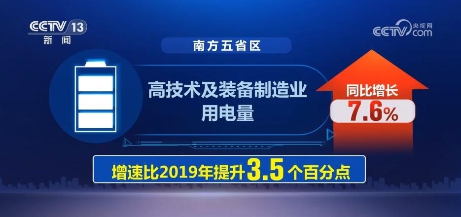 而在南方電網(wǎng)經(jīng)營區(qū)域內(nèi)的廣東、廣西等五省區(qū),高技術(shù)及裝備制造業(yè)用電量同比增長7.6%,增速比2019年提升3.5個百分點,反映工業(yè)經(jīng)濟轉(zhuǎn)型升級態(tài)勢加快。
