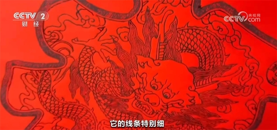 平陽木版年畫非遺傳承人 王軍:我現(xiàn)在手上拿的這一張就是龍年主推的一個福字年畫,主要以平陽木版年畫最傳統(tǒng)的圖案,以福字為主,突出龍的元素,最難的就是龍的龍鱗、龍須,線條特別細,雕刻的時候特別難。