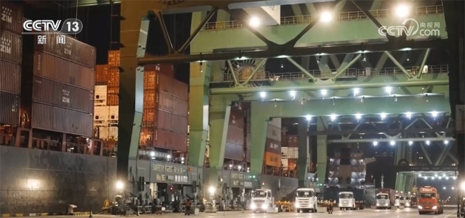 總臺記者 李青音:從卸船再到裝車、出閘,這個過程僅僅需要20分鐘就可以完成。完成了這一切,車?yán)遄訉㈦x開碼頭,全速赴往下一站。