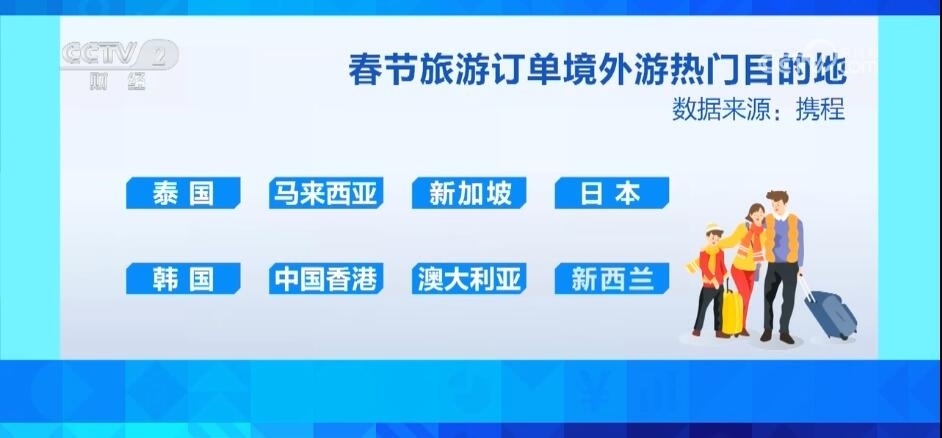 數據顯示,春節(jié)期間,國內前十熱門目的地為北京、上海、廣州、深圳、哈爾濱、成都、西安、杭州、三亞、昆明。出境游方面,熱門旅游目的地則包括泰國、馬來西亞、新加坡、日本、韓國、中國香港、澳大利亞、新西蘭。