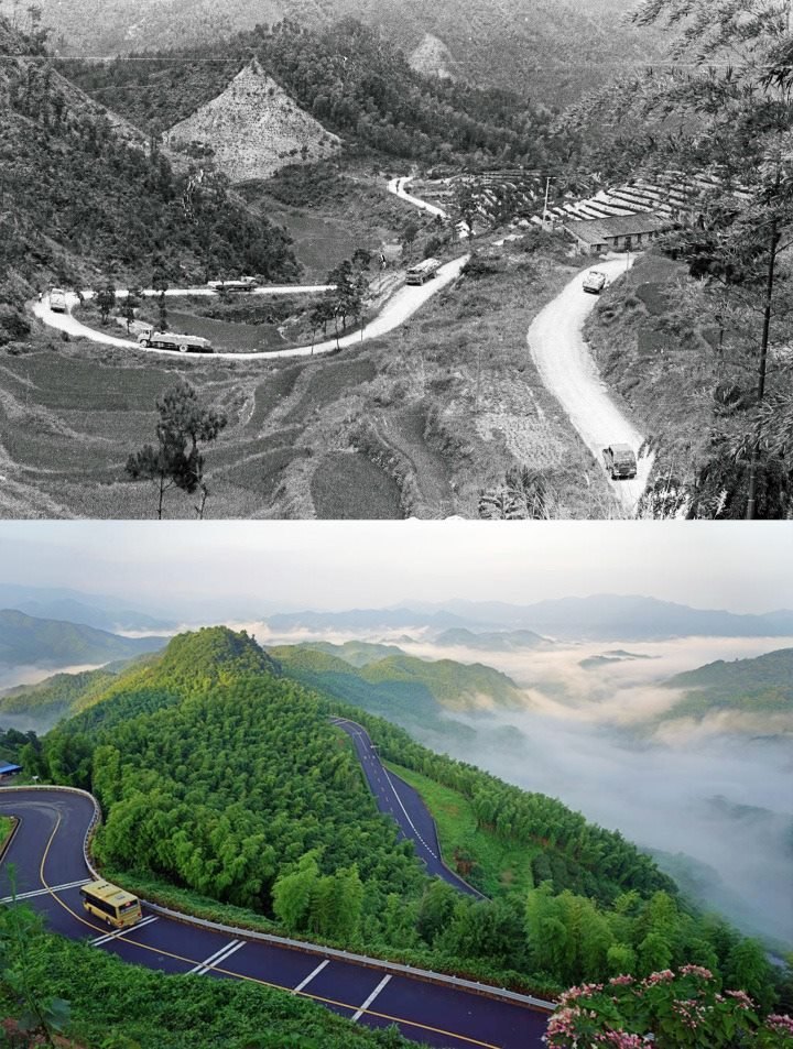 通往余姚橫坎頭村的路前后對比圖。余姚梁弄鎮(zhèn)供圖