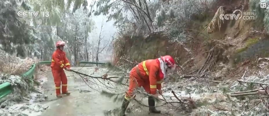 潛山市第一時間協(xié)調(diào)組織消防、供電、城管、交運等多部門聯(lián)合行動,在結(jié)冰路段開展撒鹽、除冰作業(yè),及時清理路上倒伏樹枝,搶修受損電桿電線。