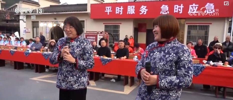 為了參加這次“村晚”,村里喜歡樂(lè)器的7個(gè)村民臨時(shí)組建了鑼鼓隊(duì),每天積極練習(xí)。鼓聲一響,瞬間點(diǎn)燃了現(xiàn)場(chǎng)氣氛,上百人圍桌就餐看演出,年的味道就這樣來(lái)了。