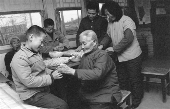 1960年,遼寧鞍鋼老工人于德舉一家在吃年夜飯。為過(guò)年準(zhǔn)備一頓豐盛的飯菜是當(dāng)時(shí)人們頗費(fèi)腦筋的事。