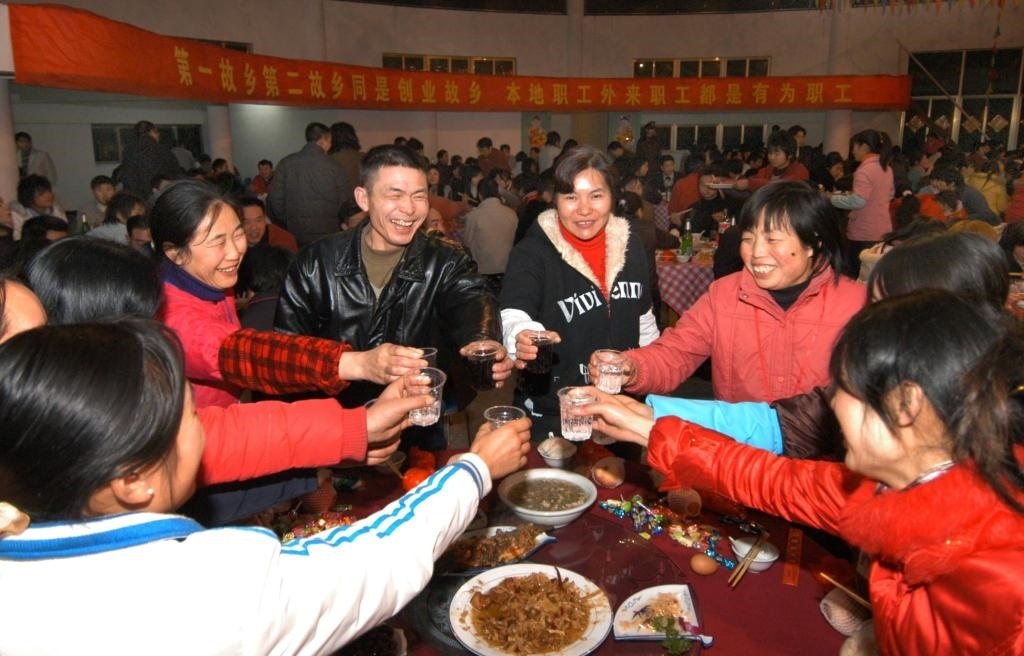 2008年1月31日晚,浙江義務(wù)一公司組織留守過(guò)年的400多名員工一起吃團(tuán)圓飯。