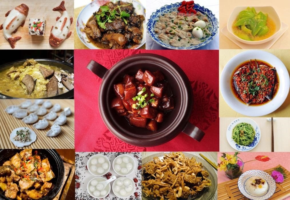 2014年拍攝的拼版照片:“一桌年夜飯”,依次為年糕、發(fā)菜豬手、扁肉燕、長(zhǎng)年菜、殺豬菜、餃子、紅燒肉、鴻運(yùn)當(dāng)頭、安豆苗、臭鱖魚、湯圓、四喜烤麩、八寶飯(從左至右、從上至下)。