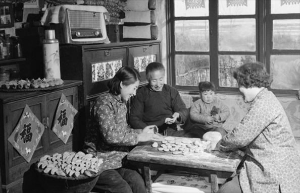 1981年,內(nèi)蒙古呼倫貝爾牧民高高興興包餃子過(guò)春節(jié)。