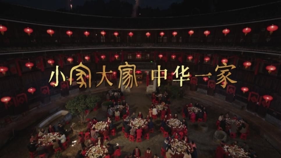 影片的結(jié)束語是點(diǎn)睛之筆:“我們相稱相謂,只因相愛相親。小家大家,中華一家。” 使用了金文、篆書、楷體三種不同時(shí)期的字體展現(xiàn)一句話里的三個(gè)“家”字,巧妙地把數(shù)千年來中華傳統(tǒng)文化中“家文化”的源遠(yuǎn)流長(zhǎng)、傳承至今之意蘊(yùn)含其中,將家的形式與家的內(nèi)涵完美地融合在一起,既表達(dá)了中國人對(duì)家的眷戀與倚賴,也體現(xiàn)了對(duì)中華大家庭的熱愛與自豪。