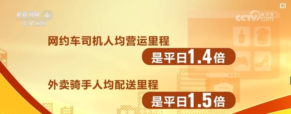 數據顯示,2月9日當天,網約車人均營運里程是平日的1.4倍,外賣騎手人均配送里程是平日的1.5倍。大數據測算,除夕當天,大約有7.4萬網約車司機、32.5萬外賣騎手和5.5萬快遞員在北京市的大街小巷奔波。