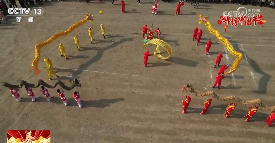 在射洪洋溪鎮(zhèn)水洲壩村,陣陣鼓樂聲中,當(dāng)?shù)匚椠垈鞒姓呶柚鴥蓷l草龍在廣場內(nèi)來回穿梭,時而騰空疾飛,時而逶迤蛇行,吸引眾多游客駐足觀看。