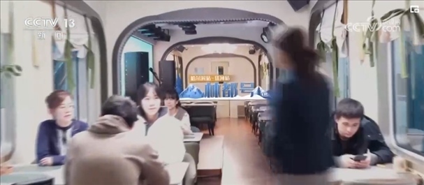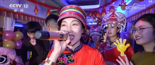 就在記者采訪時(shí),列車員邀請大家去一號車廂參加一個(gè)聯(lián)歡會。春節(jié)爆滿的車廂,讓他們也感受到了濃濃的年味兒。