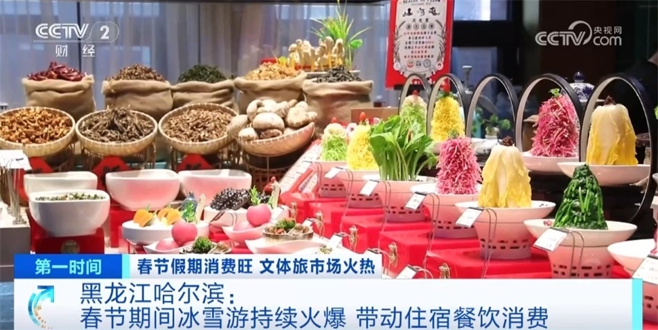 冰雪旅游的火爆也帶動了當?shù)夭惋?、住宿等相關(guān)產(chǎn)業(yè)的消費增長,哈爾濱市商務(wù)局對部分重點行業(yè)調(diào)查數(shù)據(jù)顯示,2月10日至13日,春節(jié)哈爾濱市住宿行業(yè)營業(yè)額較去年同期增長22.90%,餐飲行業(yè)企業(yè)營業(yè)額較去年同期增長51.55%。