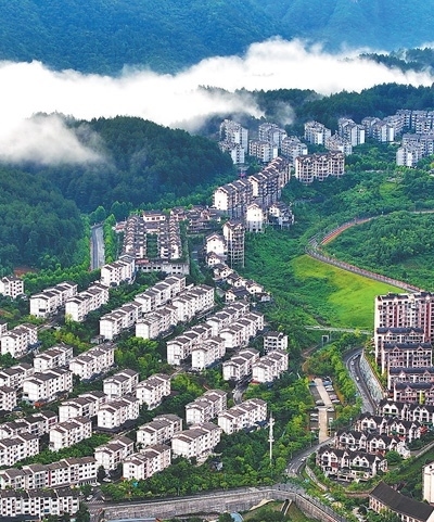 重慶市萬(wàn)盛經(jīng)開(kāi)區(qū)北門(mén)村移民新村,一棟棟錯(cuò)落有致的民居與高山相映成景。讓搬遷群眾“搬得出、穩(wěn)得住、能致富”,各地因地制宜發(fā)展特色產(chǎn)業(yè),助力農(nóng)民持續(xù)增收。曹永龍攝(人民視覺(jué))
