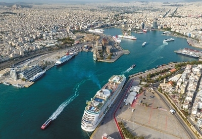 中國(guó)企業(yè)參與投資運(yùn)營(yíng)的希臘比雷埃夫斯港渡輪碼頭,游輪靠岸。在中企助力下,比雷埃夫斯港發(fā)展成為歐洲十大集裝箱港口之一。尼古拉斯·格洛戈維蒂斯攝