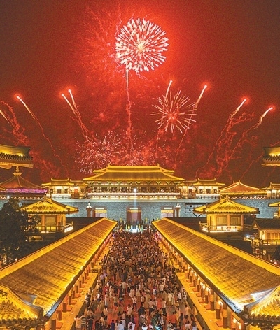 游客們?cè)诤笔∠尻?yáng)市唐城景區(qū)看煙花秀。當(dāng)?shù)嘏e辦的戲曲文化藝術(shù)節(jié)吸引了眾多省內(nèi)外游客前來(lái),拉動(dòng)當(dāng)?shù)芈糜谓?jīng)濟(jì)。據(jù)統(tǒng)計(jì),2023年國(guó)內(nèi)出游人次達(dá)48.91億,國(guó)內(nèi)游客出游總花費(fèi)4.91萬(wàn)億元。楊 東攝(影像中國(guó))