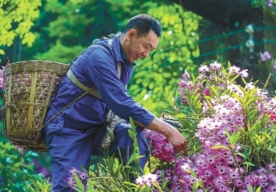 四川省瀘州市合江縣福寶鎮(zhèn)種植基地,村民在采摘金釵石斛鮮花。各地發(fā)展綠色生態(tài)農(nóng)業(yè),積極打造特色農(nóng)產(chǎn)品優(yōu)勢(shì)品牌,助推鄉(xiāng)村全面振興。李貴平攝(影像中國(guó))