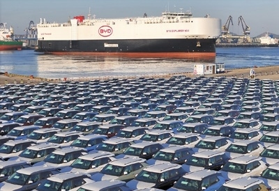 中國(guó)首艘由國(guó)內(nèi)船企建造、專(zhuān)門(mén)用于國(guó)產(chǎn)新能源汽車(chē)出口的汽車(chē)運(yùn)輸船“比亞迪開(kāi)拓者1號(hào)”搭載新能源汽車(chē)從山東煙臺(tái)港啟航。2023年,中國(guó)新能源汽車(chē)產(chǎn)銷(xiāo)量均突破900萬(wàn)輛,其中出口120.3萬(wàn)輛,同比增長(zhǎng)77.6%,成為經(jīng)濟(jì)高質(zhì)量發(fā)展中的一抹亮色。唐 克攝(影像中國(guó))