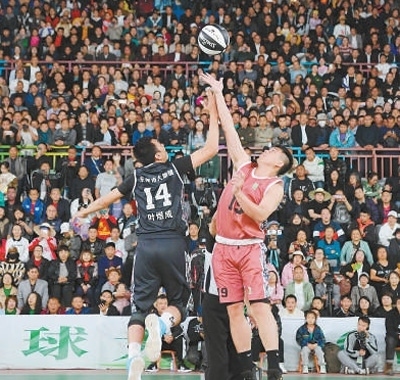 在貴州省臺(tái)江縣舉行的2023全國(guó)和美鄉(xiāng)村籃球大賽(“村BA”)總決賽現(xiàn)場(chǎng)。以“村BA”為代表的鄉(xiāng)村體育賽事廣受關(guān)注。賈 智攝(影像中國(guó))