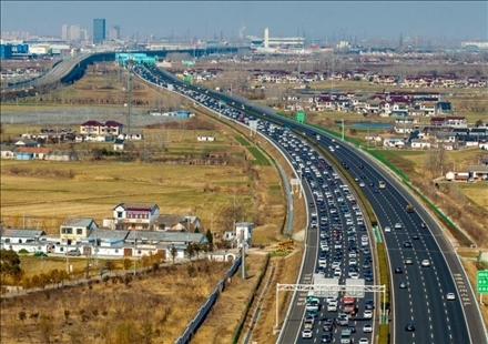 春節(jié)假期臨近尾聲,各地迎來(lái)返程高峰。圖為車輛行駛在京滬高速江蘇省淮安市淮安區(qū)境內(nèi)。