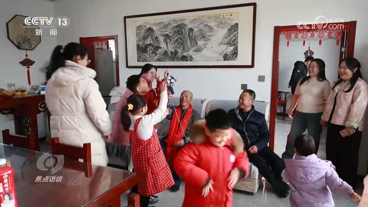 除夕,大紅的“福”字透著節(jié)日的喜氣。在河北省武邑縣的大劉莊村,83歲的郭順義老人家里格外熱鬧,四世同堂的5個(gè)家庭,15口人團(tuán)聚在一起過(guò)年,這是這個(gè)大家庭一年中最重要的日子。