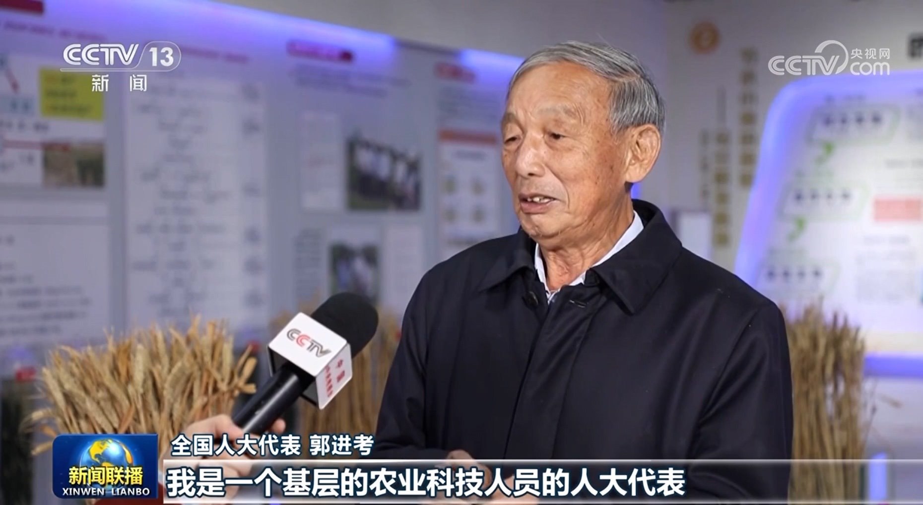 央視網消息(新聞聯播):全國人大代表郭進考是著名小麥育種專家,履職一年來,他深入田間地頭推廣新品種、教授農民科學種田,為保障糧食安全不懈努力。