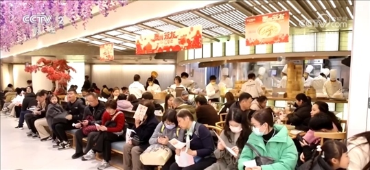 大數(shù)據(jù)顯示,正月初一到初十,全國(guó)重點(diǎn)商圈客流量達(dá)到8010萬(wàn)人次,較2023年同期增長(zhǎng)81%。涌動(dòng)的人潮推升住宿餐飲消費(fèi)。國(guó)家稅務(wù)總局增值稅發(fā)票數(shù)據(jù)顯示,整個(gè)春節(jié)假期,住宿服務(wù)日均銷售收入同比增長(zhǎng)25.4%,餐飲服務(wù)日均銷售收入同比增長(zhǎng)31.5%。在江蘇南京,多家美食餐飲“南京首店”引來(lái)大批消費(fèi)者嘗鮮。