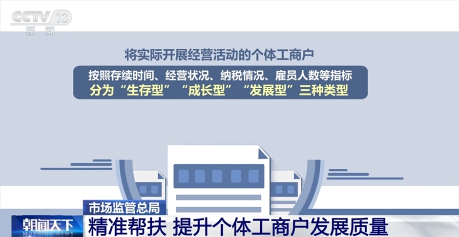 市場(chǎng)監(jiān)管總局登記注冊(cè)局局長(zhǎng)任端平介紹詳情,他表示,實(shí)施分型分類,根本目的是結(jié)合個(gè)體工商戶發(fā)展實(shí)際,加強(qiáng)政策支持幫扶的精準(zhǔn)性、針對(duì)性和科學(xué)性,讓個(gè)體工商戶能感受到實(shí)實(shí)在在的政策紅利和獲得感。