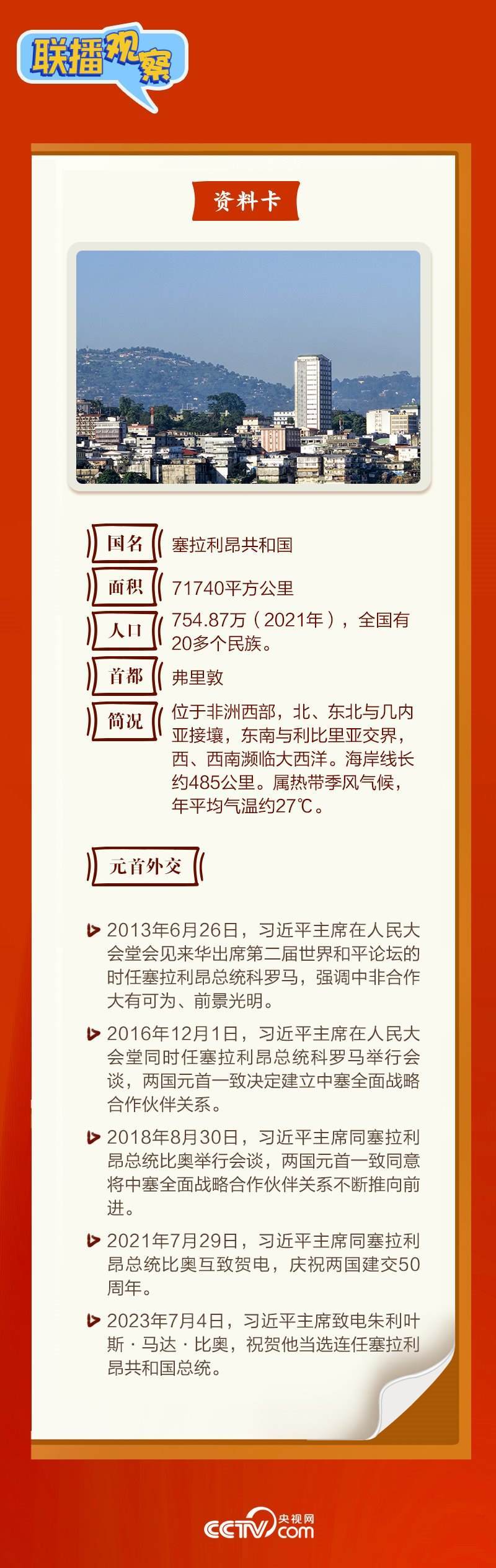 2月28日,習(xí)近平主席在人民大會(huì)堂同來(lái)華進(jìn)行國(guó)事訪問(wèn)的塞拉利昂總統(tǒng)比奧舉行會(huì)談。在會(huì)談中,習(xí)主席高度評(píng)價(jià)“中塞友好源遠(yuǎn)流長(zhǎng)”,認(rèn)為“中塞關(guān)系堪稱中非團(tuán)結(jié)合作的典范”,并指出中方將推動(dòng)中非合作提質(zhì)升級(jí),將中塞、中非友好發(fā)揚(yáng)光大。