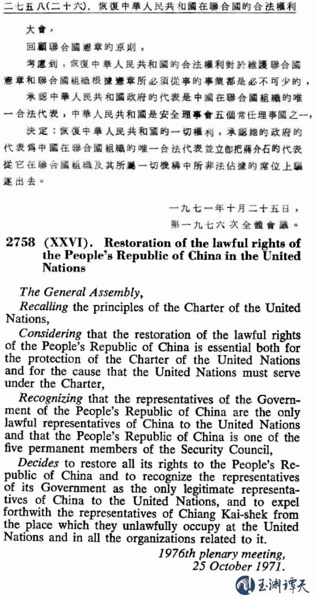 ||聯(lián)大第2758號(hào)決議中、英文版