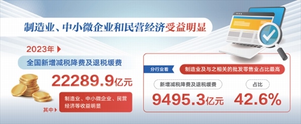 超2.2萬(wàn)億元——這是2023年全國(guó)新增減稅降費(fèi)及退稅緩費(fèi)的總規(guī)模,其中超七成“落”于民營(yíng)經(jīng)濟(jì),稅費(fèi)紅利精準(zhǔn)“落袋”,助企減負(fù)增活力。