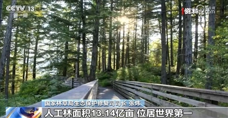 國(guó)家林草局生態(tài)保護(hù)修復(fù)司司長(zhǎng)張煒表示,黨的十八大以來,全國(guó)上下共同努力,累計(jì)完成國(guó)土綠化任務(wù)16.8億畝,全國(guó)森林面積、森林蓄積量連續(xù)多年保持“雙增長(zhǎng)”,人工林面積13.14億畝,位居世界第一。