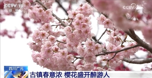 在四川省廣元市昭化區(qū)柏林古鎮(zhèn),寒緋櫻、山櫻、霞櫻等品種的櫻花樹花開正盛,放眼望去,株株櫻花樹上,重重疊疊的花朵掛滿枝頭,一朵朵爭(zhēng)相吐艷、一團(tuán)團(tuán)燦若云霞,游客徜徉其間盡情享受著大好春光。
