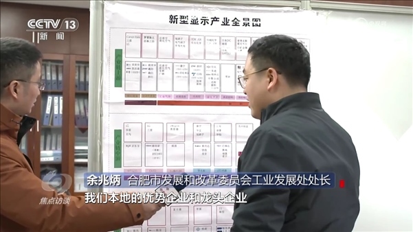 合肥市發(fā)展和改革委員會工業(yè)發(fā)展處處長余兆炳:“新型顯示產(chǎn)業(yè)全景圖上面顯示了合肥市發(fā)展新型顯示的產(chǎn)業(yè)鏈的上游、中游、下游本地的優(yōu)勢企業(yè)和龍頭企業(yè),有這個全景圖,我們對標作戰(zhàn)、掛圖作戰(zhàn)非常可視化作戰(zhàn)。”