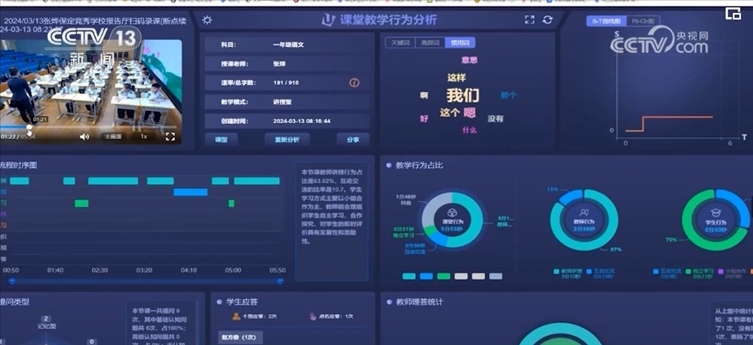 在河北保定競(jìng)秀學(xué)校,一套新引進(jìn)的智慧教學(xué)研一體化系統(tǒng)正在推行。教室里,兩臺(tái)智能攝像機(jī)對(duì)課堂情況進(jìn)行視頻采集,包括高頻詞、師生互動(dòng)、講課語速等元素,通過AI技術(shù)生成課堂大數(shù)據(jù)分析報(bào)告,對(duì)于改進(jìn)教學(xué)方法起到意想不到的效果。