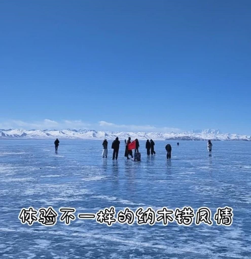 當(dāng)前,納木錯(cuò)正值限定“藍(lán)冰季”,一望無(wú)際的藍(lán)色冰面,遼闊而寧?kù)o。來(lái)自全國(guó)各地的游客來(lái)到納木錯(cuò)享受別樣的冰雪風(fēng)情。