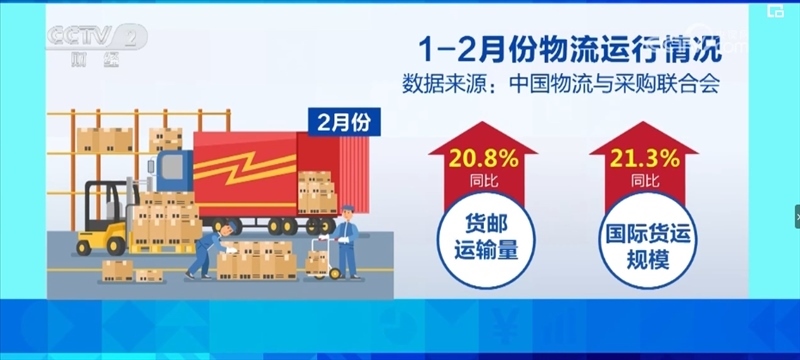 從消費(fèi)來看,1—2月份,單位與居民物品物流總額同比增長14.0%,實(shí)物商品網(wǎng)上零售額同比增長14.4%,增速比上年全年加快6個(gè)百分點(diǎn);快遞業(yè)務(wù)量超過230億件,同比增長28.5%,比上年全年加快9.1個(gè)百分點(diǎn)。