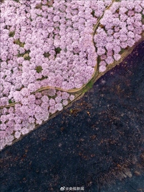近日,有網友在貴州安順拍攝到這樣的畫面:山脊一側已是山花爛漫;而另一側,曾被山火燒過的土地上,嫩芽悄悄破土。網友評論:這就是野火燒不盡春風吹又生的感動。圖自@歐陽陽陽Soleil?