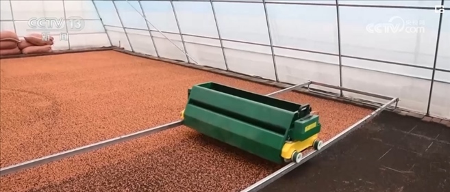在黑龍江墾區(qū)共青農場的智能水稻育秧大棚內,自動水稻播種機械正將稻種播撒在秧盤內。育秧大棚接入了物聯(lián)網系統(tǒng)的智能調溫控水系統(tǒng),能有效增強大棚保溫性能、增加棚內溫度。同時,還接入了智能卷簾器、溫度傳感器等。