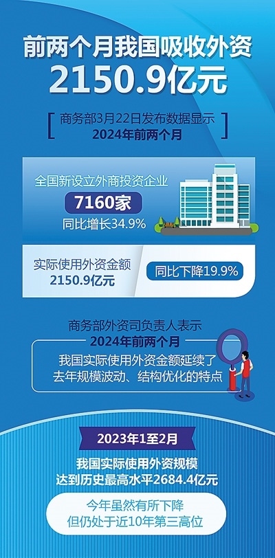 商務部數據顯示,今年1-2月,中國新設外資企業(yè)數量達7160家,同比增長34.9%。商務部外資司有關負責人表示,這一數字是近5年來的最高水平,顯示出跨國公司仍看好中國市場發(fā)展機遇,對華投資持續(xù)加碼。
