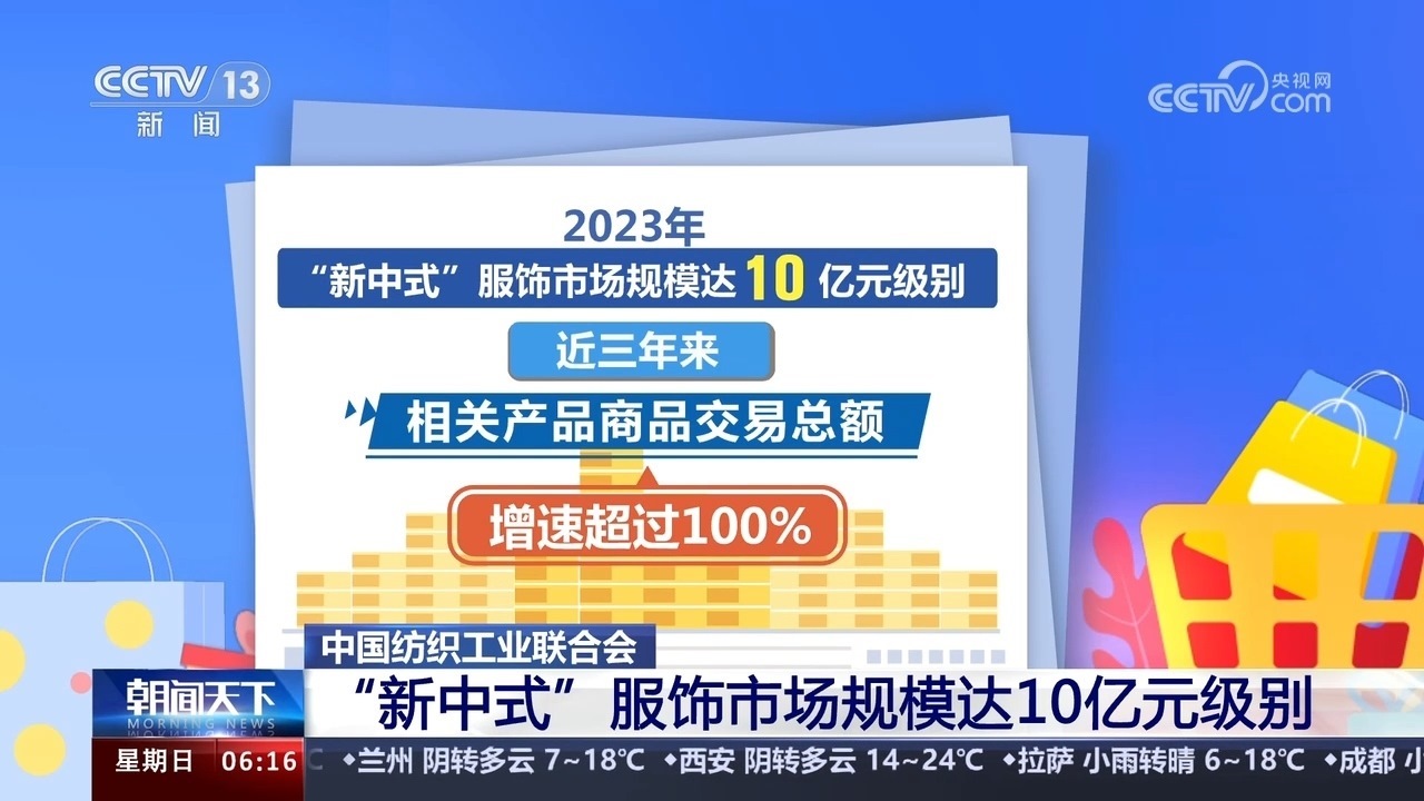 中國(guó)紡織工業(yè)聯(lián)合會(huì)數(shù)據(jù)顯示,2023年“新中式”服飾市場(chǎng)規(guī)模達(dá)10億元級(jí)別,近三年來,相關(guān)產(chǎn)品商品交易總額增速超過100%。今年1月以來,在互聯(lián)網(wǎng)銷售平臺(tái)上“新中式”“宋錦”的搜索量環(huán)比分別增長(zhǎng)近6倍和近20倍。