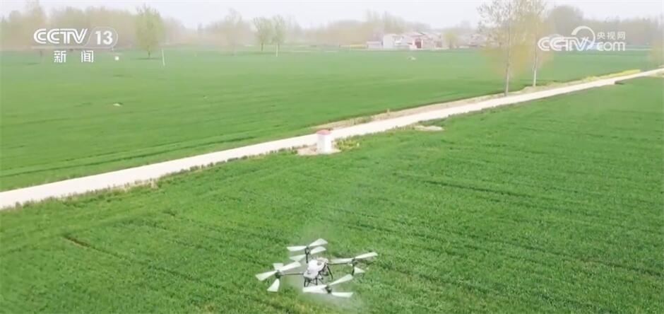 王志國表示,目前,小麥病蟲害90%以上用植保無人機(jī)來防治,一臺(tái)植保無人機(jī)一天可防治1000畝地,能頂替100個(gè)勞動(dòng)力,而且不重噴、不漏噴,非常精準(zhǔn)。