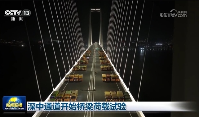 央視網(wǎng)消息(新聞聯(lián)播):今天(4月13日),粵港澳大灣區(qū)超級工程深中通道進(jìn)入橋梁荷載試驗(yàn)階段。在中山大橋,64輛大貨車停在橋梁跨中位置,檢測橋梁位移和應(yīng)力情況,測試動(dòng)力參數(shù)、汽車沖擊系數(shù)等。