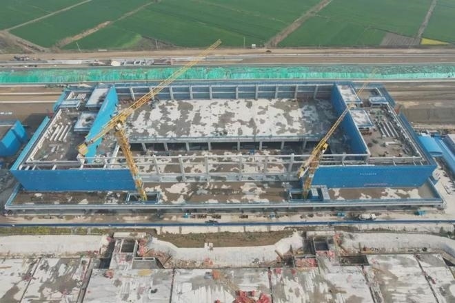 車站采用鋼結(jié)構(gòu)加鋁鎂錳板金屬屋面,整體空間造型提煉和吸取了明代傳統(tǒng)建筑造型特點(diǎn),結(jié)合傳統(tǒng)與現(xiàn)代的設(shè)計(jì)手法,打造具有“風(fēng)水寶地,祥瑞所鐘”設(shè)計(jì)理念的地域性地標(biāo)建筑。目前,站房主體結(jié)構(gòu)已施工完畢,正在進(jìn)行屋面鋼桁架施工。