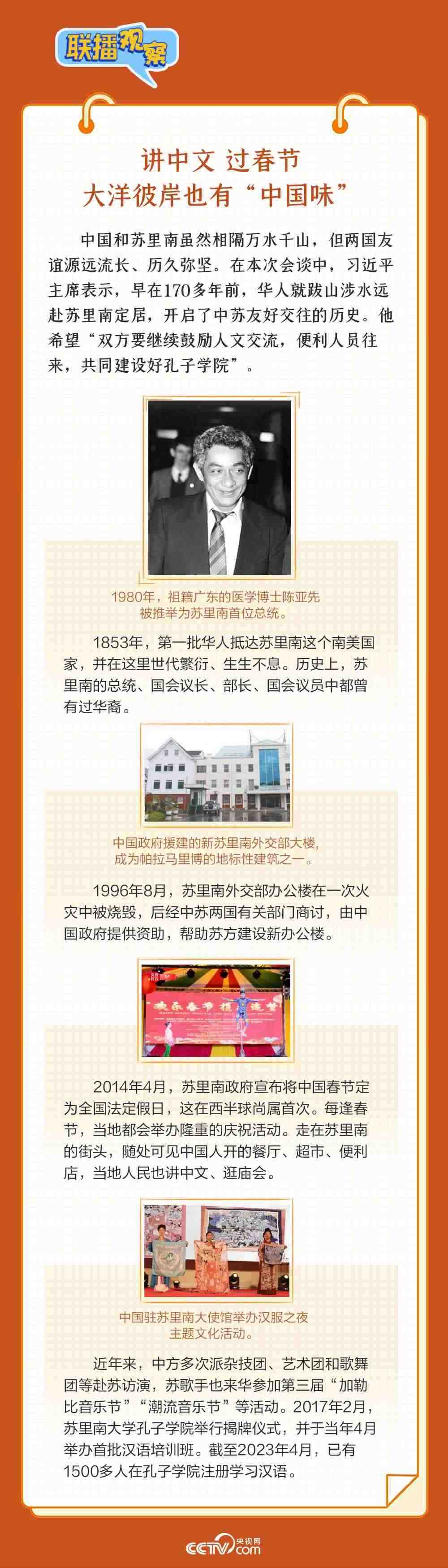 4月12日下午,習(xí)近平主席在北京人民大會堂同來華進(jìn)行國事訪問的蘇里南總統(tǒng)單多吉舉行會談。此前,外交部發(fā)言人曾表示,2024年是中國同蘇里南建立戰(zhàn)略合作伙伴關(guān)系5周年,中方歡迎單多吉總統(tǒng)在這一特殊時(shí)刻訪華。