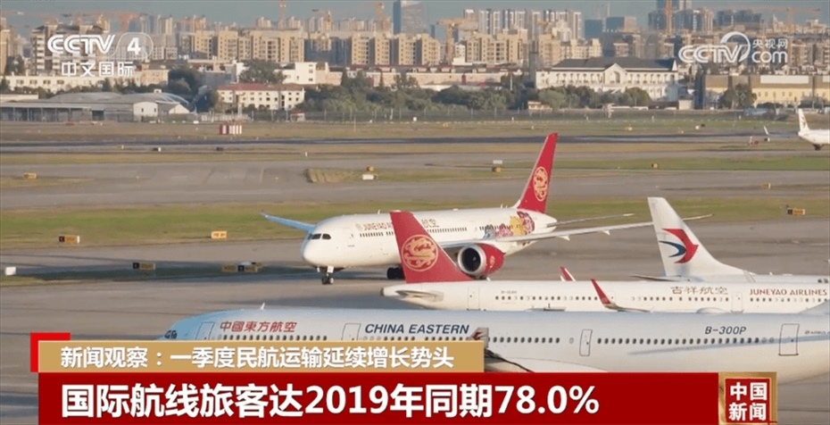 央視網(wǎng)消息:據(jù)中國民航局消息,2024年一季度,民航運輸生產(chǎn)開局良好,旅客運輸量和貨郵運輸量均創(chuàng)下歷年一季度最高值。全行業(yè)共完成運輸總周轉(zhuǎn)量同比增長45.6%,較2019年同期增長12.9%。