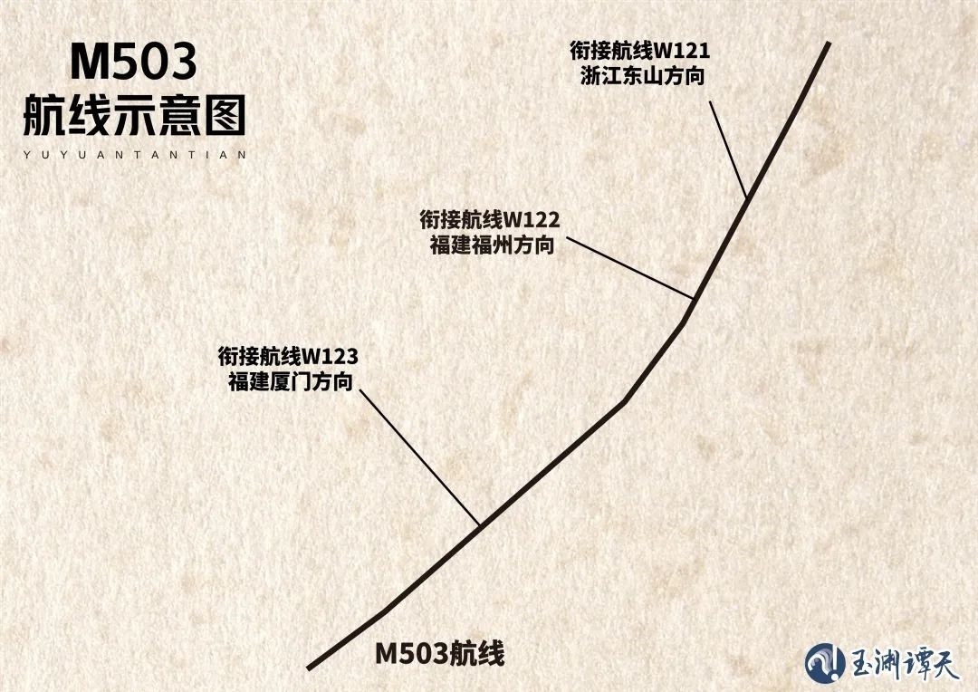 這樣的背景下,在經(jīng)過(guò)國(guó)際民航組織(ICAO)核準(zhǔn)后,這條代碼為M503的新航線正式落地,與之相配套的還有三條銜接航線,即飛往浙江東山的W121、飛往福建福州的W122和飛往福建廈門的W123。