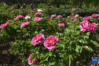 北京圓明園內(nèi)的牡丹花開始進入盛放期,吸引不少游人參觀賞花。
