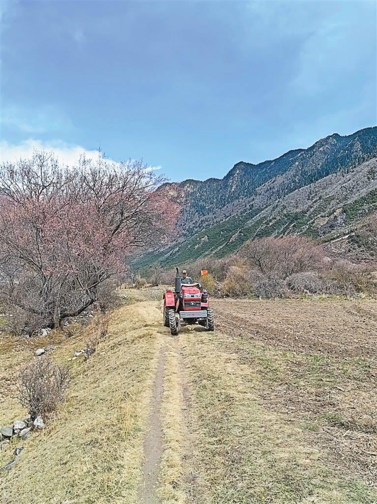 一輛紅色的旋耕機(jī)在田地旁停下來,曲美仁增邊換犁頭,邊感嘆著科技帶來的便捷:“以前耕地全靠牲畜,費(fèi)時耗力,現(xiàn)在開著旋耕機(jī)就把地耕完了,聽著這機(jī)器轟隆隆的聲音,我覺得格外開心,好像在說我們尼屋的春天特別美,我們的生活肯定也會更幸福!”